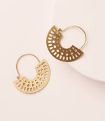 These handcrafted, lightweight hoop earrings feature gold finish disc charms with an eye-catching, radial cutout design and clean wire setting. Dimensions: 1.625"L x 1.625"W All of Matr Boomie's collection is handmade, fair trade and sustainable.