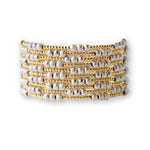 These stretch bracelets feature durable gold plating designed for long wear, even standing up to water, making them a go-to accessory for any occasion. With a stretch-to-fit design, these versatile beaded bracelets fit most wrists, offering a comfortable and stylish choice. These bracelets feature a pattern of 2mm gold plated beads with 4mm textured silver plated beads.