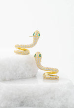 Embrace the beauty and mystery of the Little Dragon Earrings. These 18K gold-plated earrings, encrusted with sparkling zircon stones, are designed to wrap gracefully around the ear, creating a bold yet elegant statement. Inspired by the strength and beauty of the snake, the earrings feature eyes that shine with eyecatching emerald green crystals, adding a striking detail. 2025 marks the Lunar Year of the Snake, often referred to as the "Little Dragon"—a symbol of transformation, resilience, and renewal. Wear or gift these earrings as you celebrate the journey of change and the hope your purchase provides.