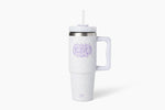 Fits in most cup holders. The two-in-one lid allows you to sip your drink or use the included reusable straw. This 30oz tumbler can keep HOT for 6hrs, COLD for 10hrs, and 45hrs iced.