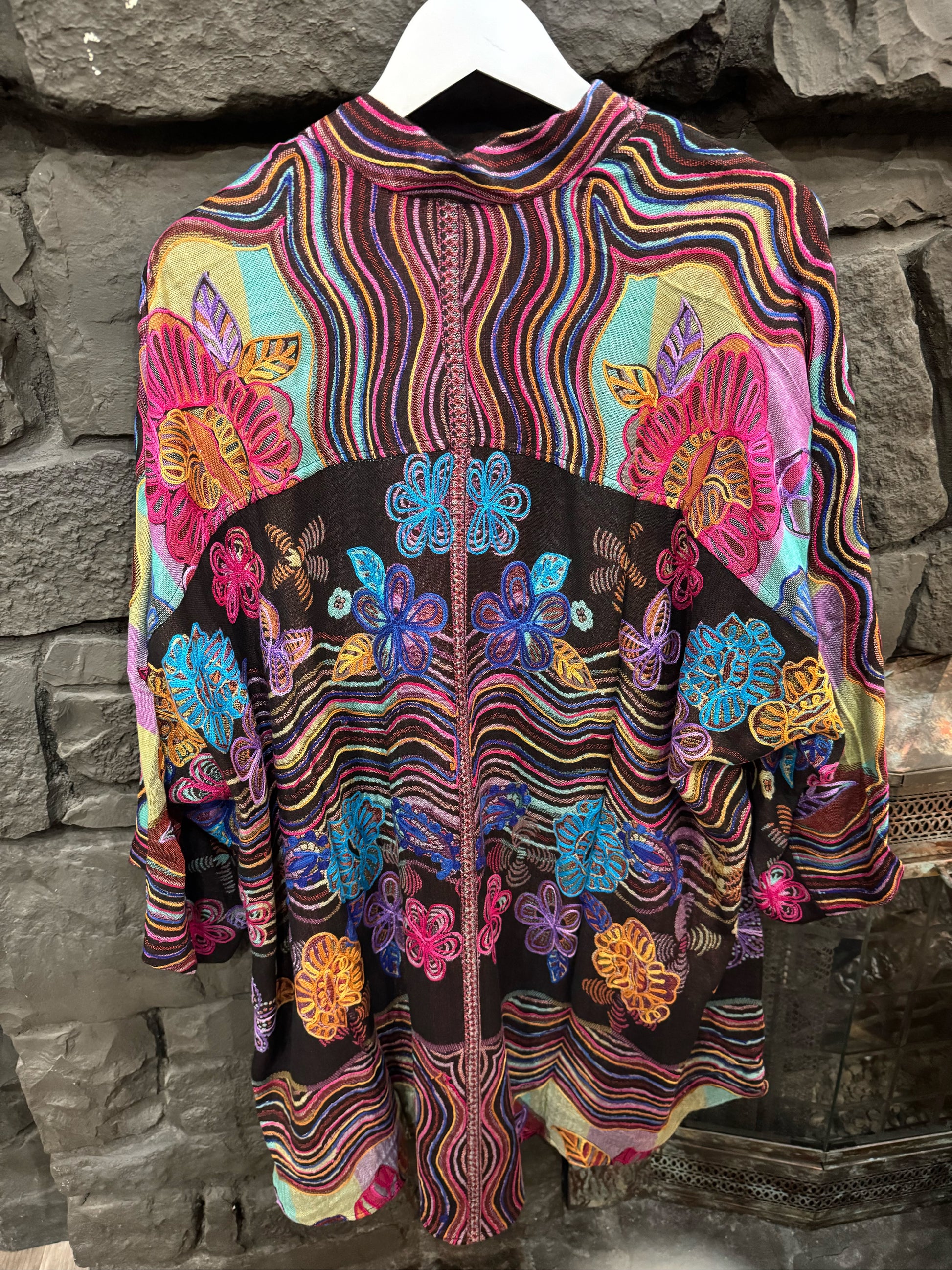 Crafted with stunning embroidery and high-quality materials, the Bok Multicolored Cardigan Kimono is a must-have for any fashion-forward wardrobe. Elevate any outfit with this versatile and stylish piece.