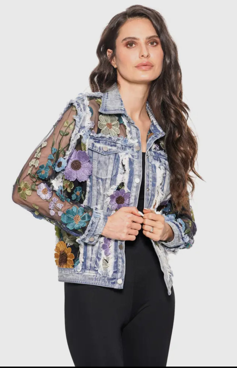 This Floral Fantasy Denim Jacket elevates your style with its whimsical design and high-end quality. Made with high-quality denim, it's a fashion statement that is both luxurious and fun. Perfect for adding a touch of playfulness to any outfit.