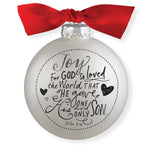 God'S Word Is Written In A Whimsical Font On This Lovely White Satin Finish Glass Bauble Ornament. With A Red Ribbon For Hanging, This Classic Style Ornament Is Perfect For Any Christmas Tree. Comes In A Gift Box With Ribbon To Hang. This Gift Makes A Difference. Through Partnership With The Nonprofit, A Better Life For Kids, Orphans And Children With Special Needs Are Given Healthy Meals, Clean Water, Safe Housing, And Education Opportunities In Ghana, Africa. Material: Glass, Ribbon. Size: 4" Diameter