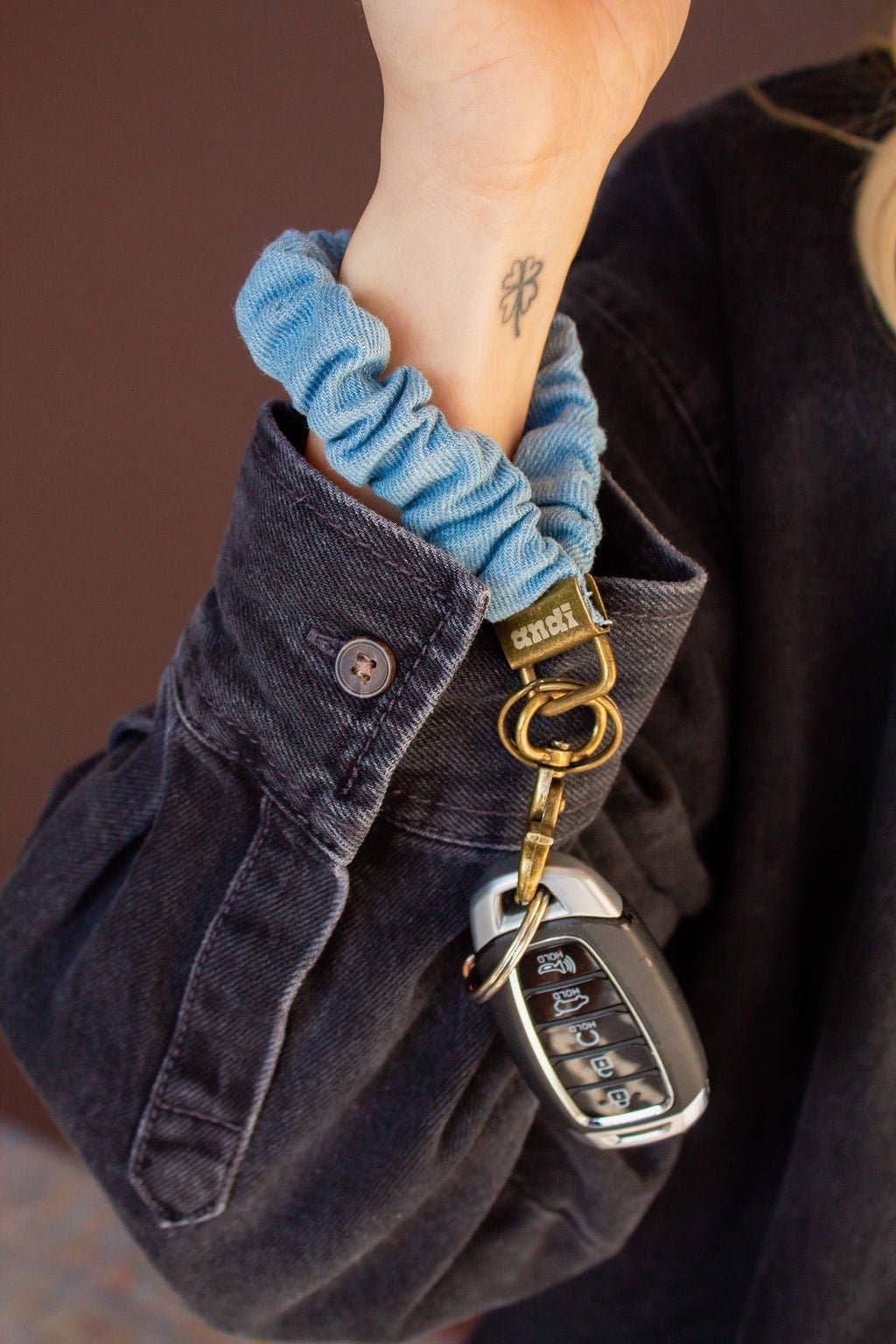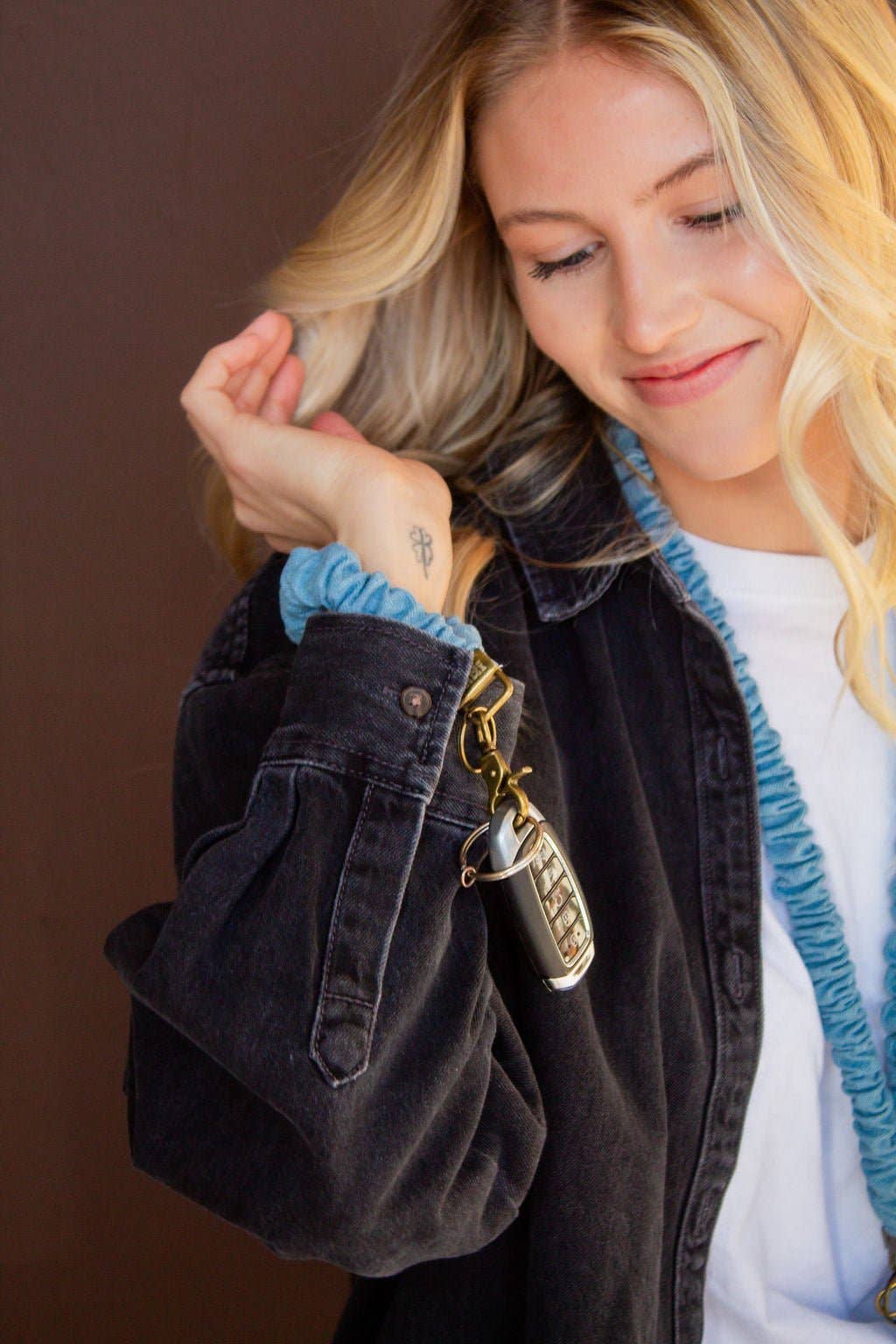 This adorable blue denim lanyard is from our collaboration with Lindsey Teaches (@lindsey_teaches on instagram). Denim blue is basically a neutral and goes with everything—it'll add a flare to all your outfits! Gone are the days of full hands with no pockets; our keychains give you one less thing to worry about.