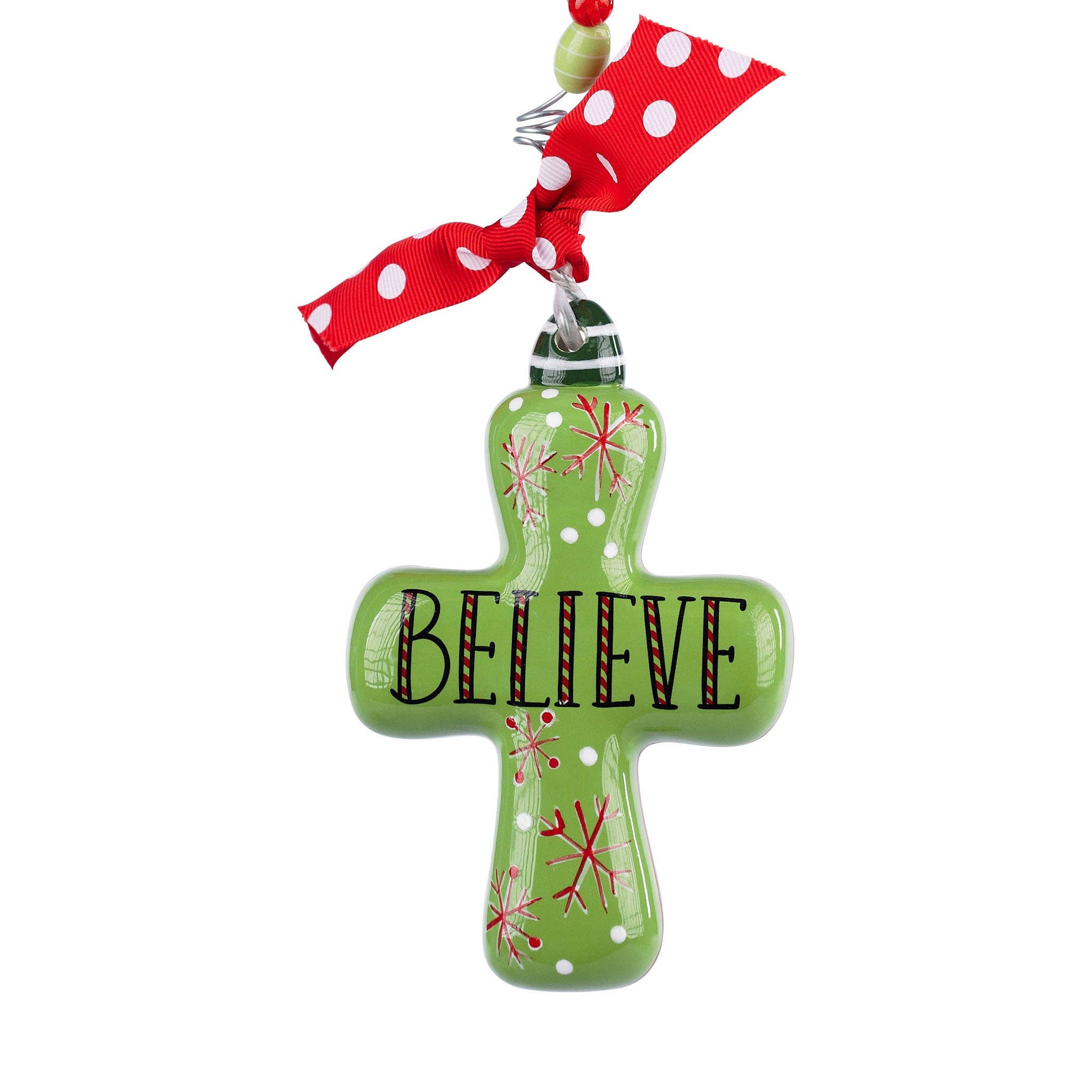 The perfect way showcase your Christmas spirit. Our green Believe Cross features snowflakes and would be a wonderful addition to any tree.