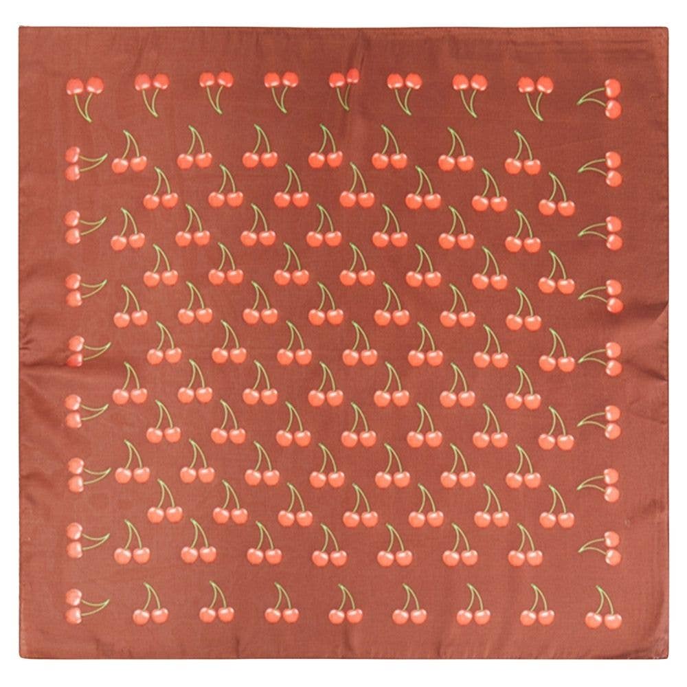 CHERRY MOTIF PRINT SILKY BANDANA SQUARE NECK SCARF