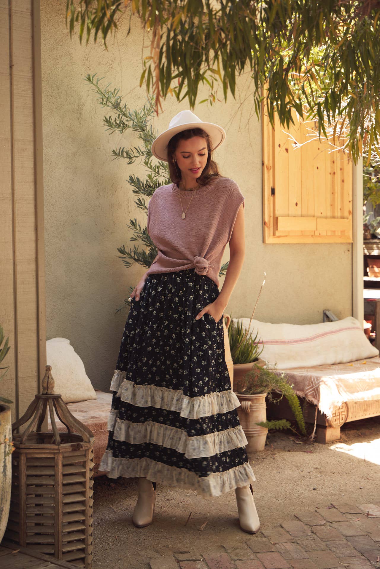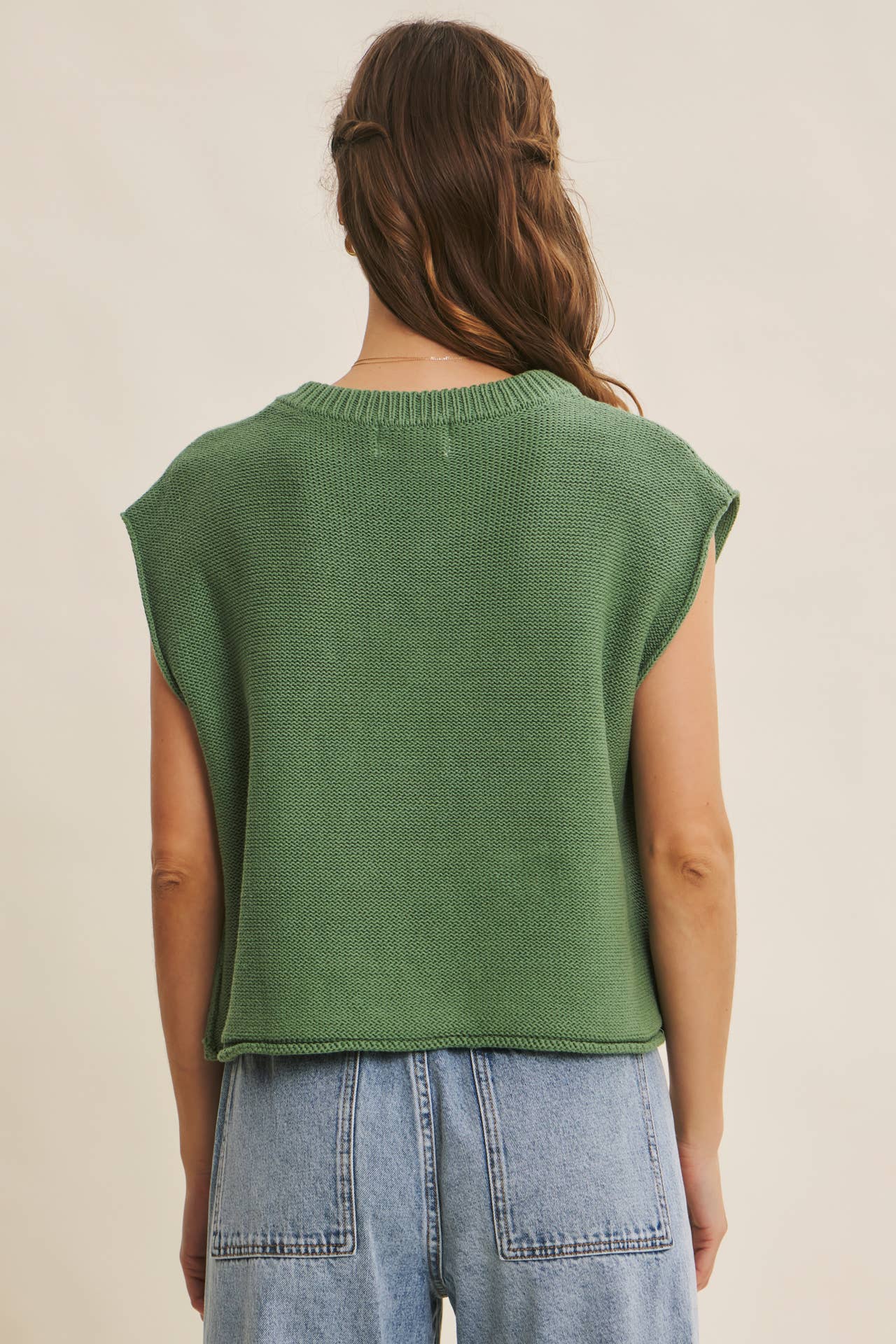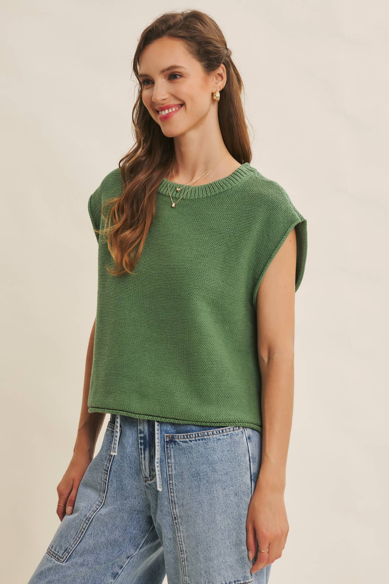 The bestseller that keeps coming back, this top is that effortless essential you'll reach for season after season. Designed in a soft, textured sweater knit with a relaxed silhouette, it brings laid-back charm to any outfit. Featuring rolled edges on the sleeves and hem, a clean round neckline, and subtle exposed seams, this versatile piece styles beautifully with everything from satin skirts to denim or wide-leg trousers. Wear it untucked for a flowy, easy look, or knot it at the waist for a more styled silhouette. From weekend brunches to casual workdays or even seasonal transitions, this sweater vest is a layering dream. Now available in a fresh range of rich, warm colors to complement any wardrobe. - Rolled edges on the sleeves and hem - Round neck - Loose fit - Relaxed fit - Sweater knit top Model is 5'9.5" and is wearing size SMALL. Please refer to our size chart. 100% COTTON