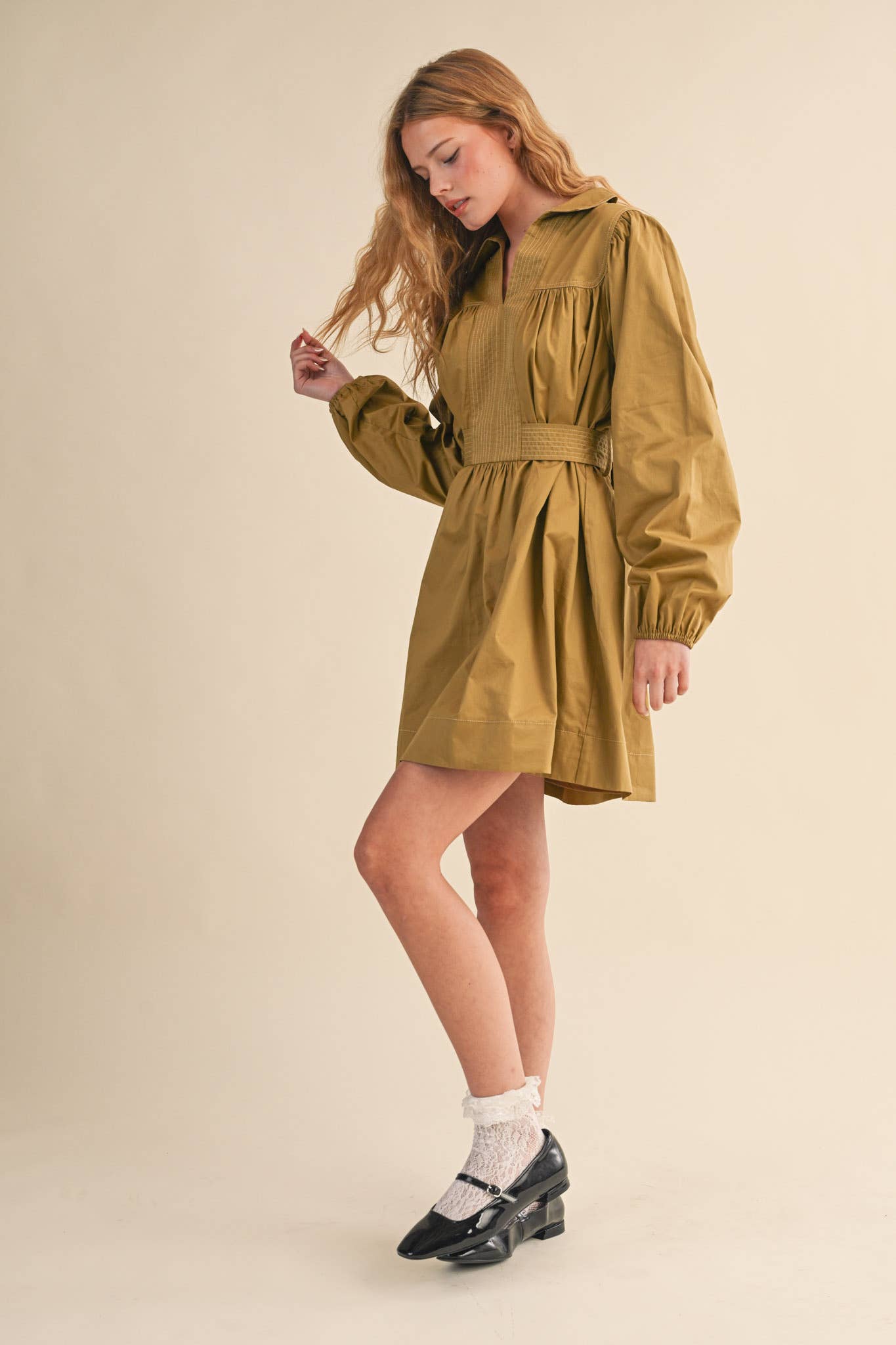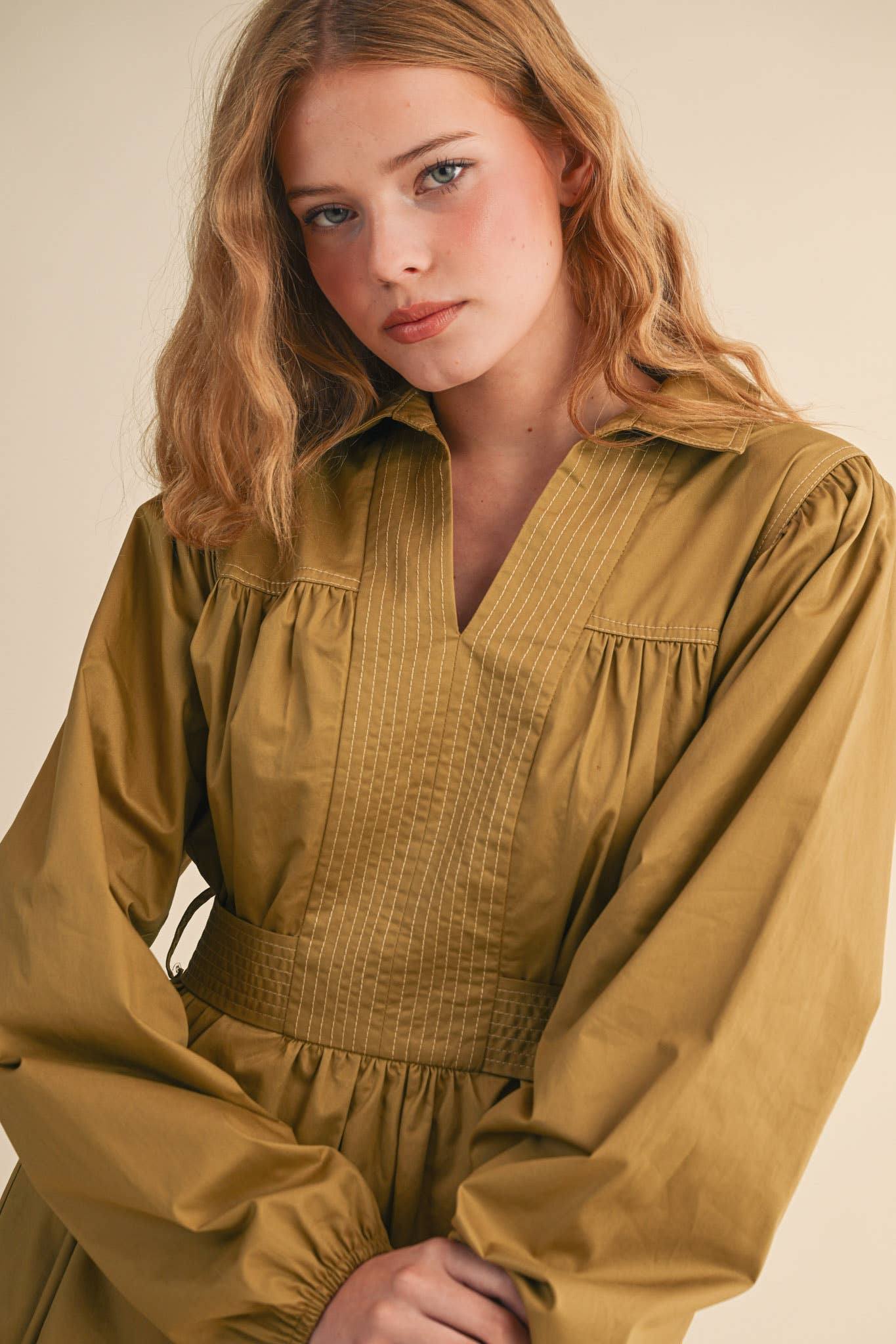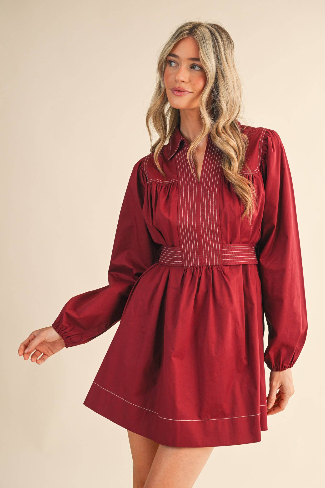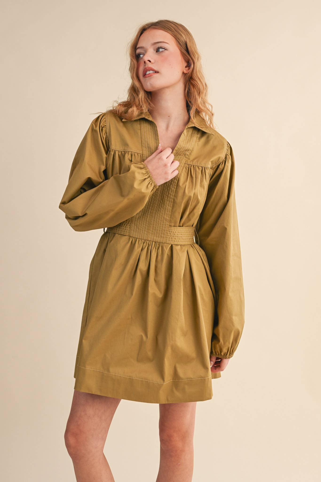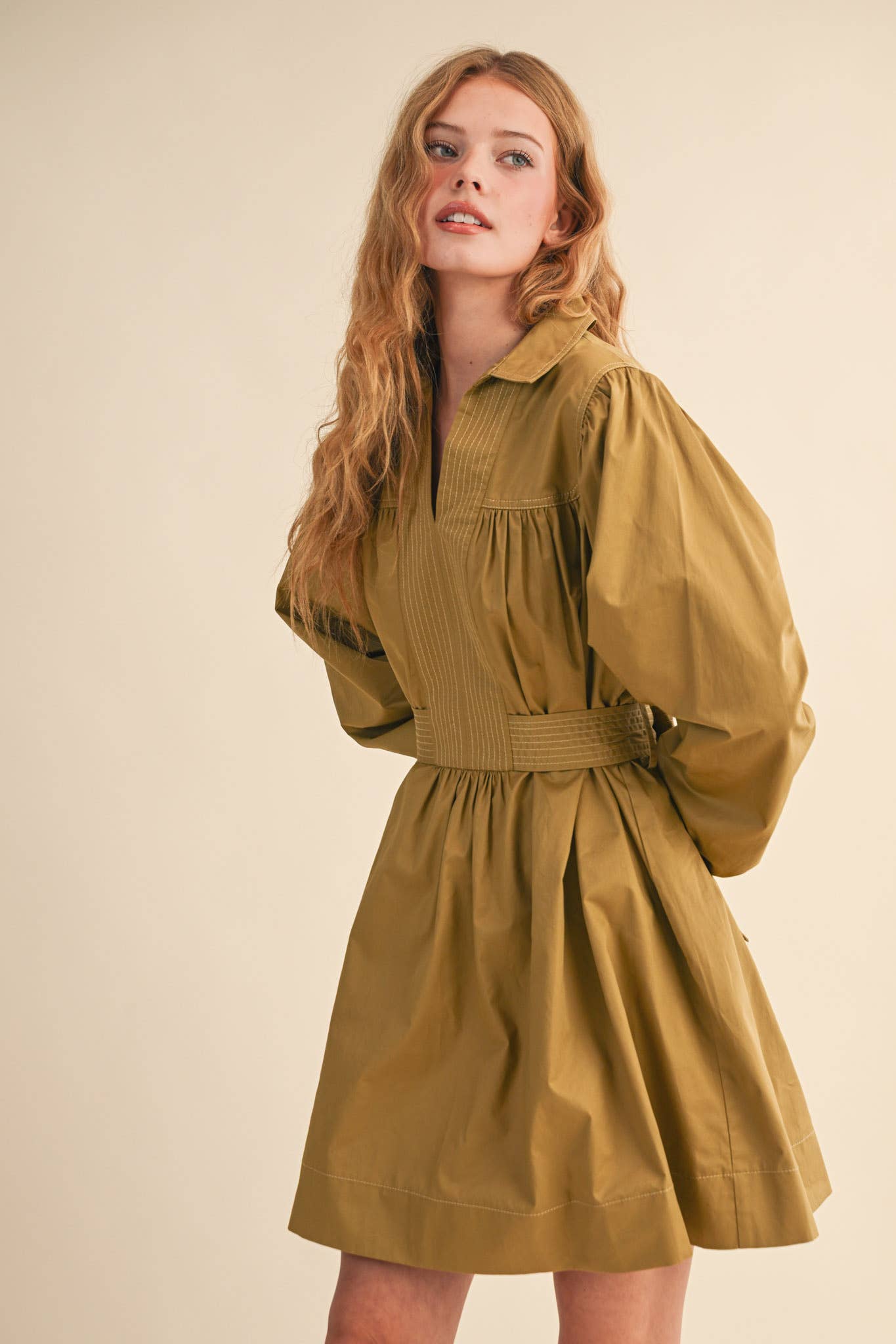 + Attached tie-back bow belt with contrast embroidered seam detail