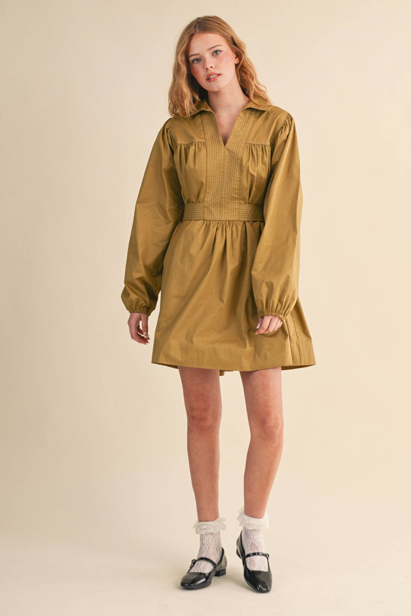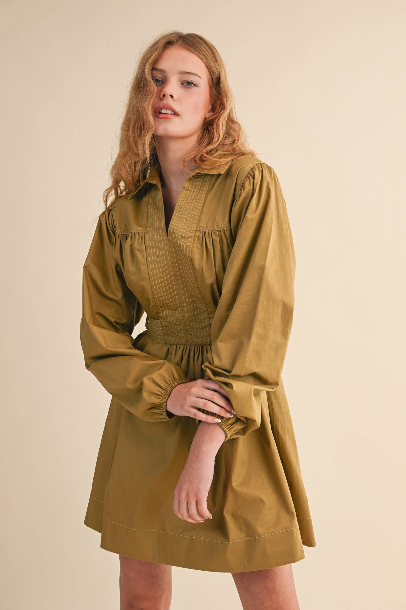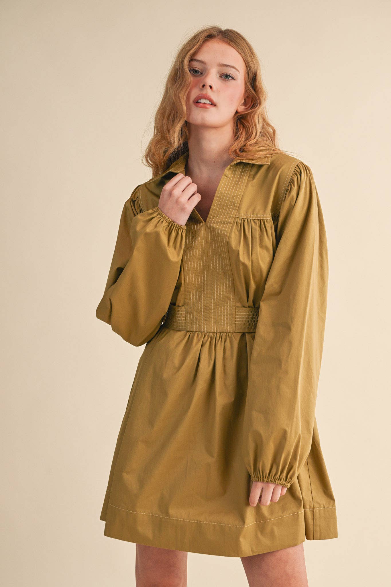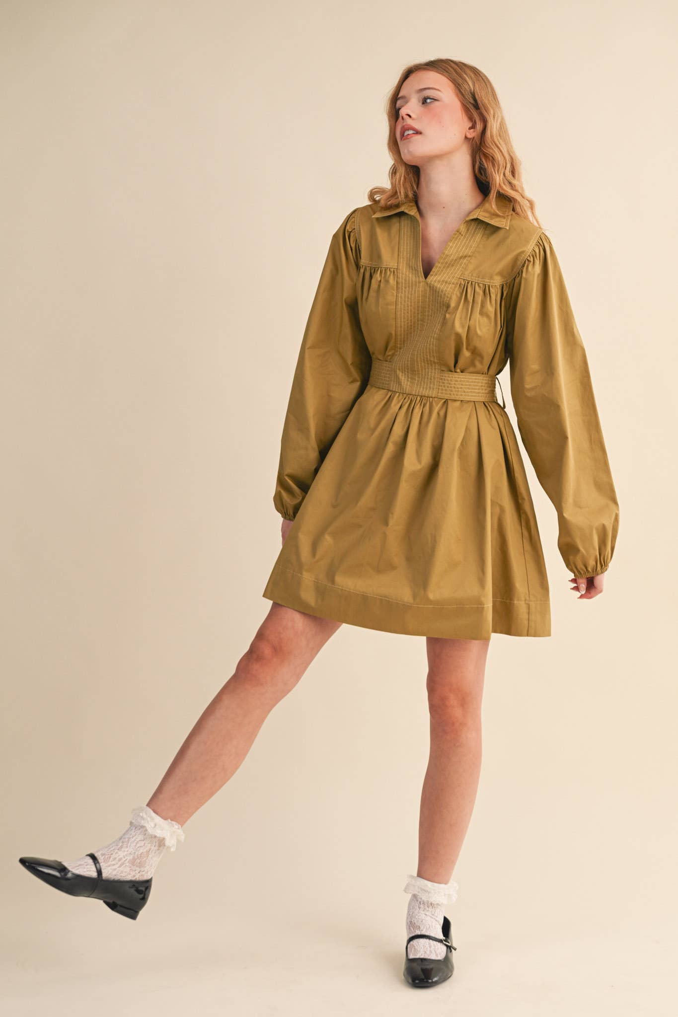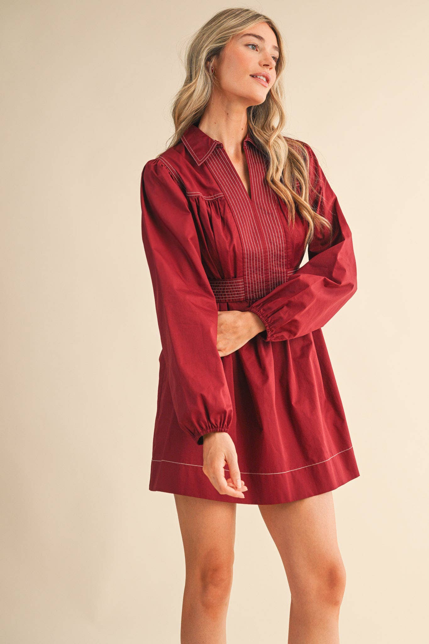 + Attached tie-back bow belt with contrast embroidered seam detail