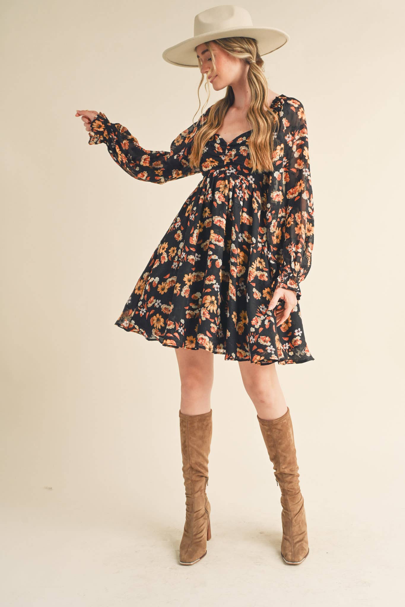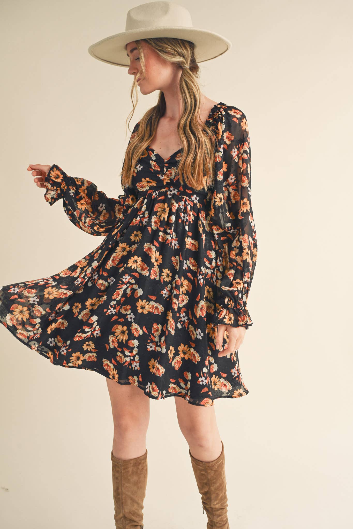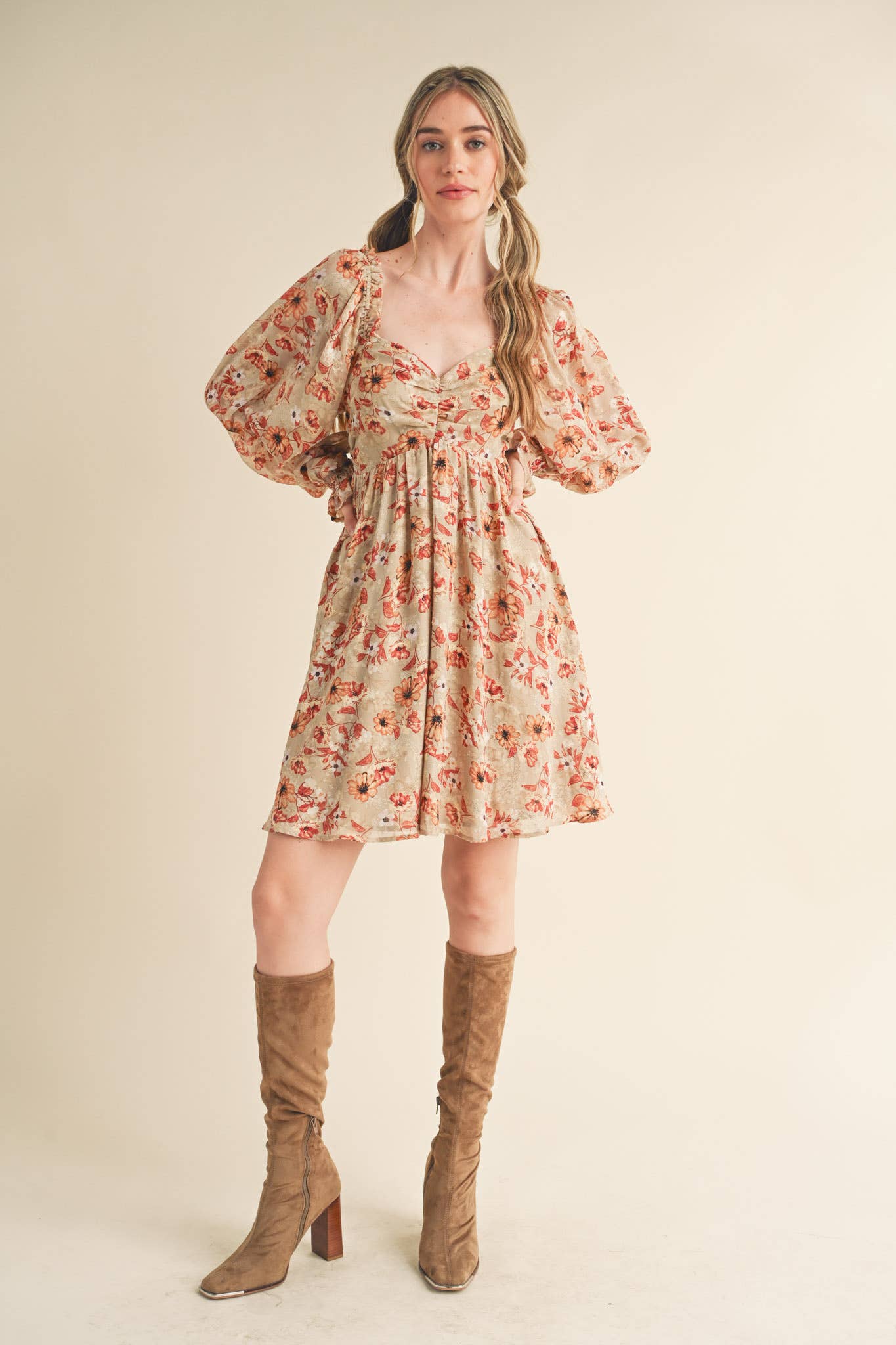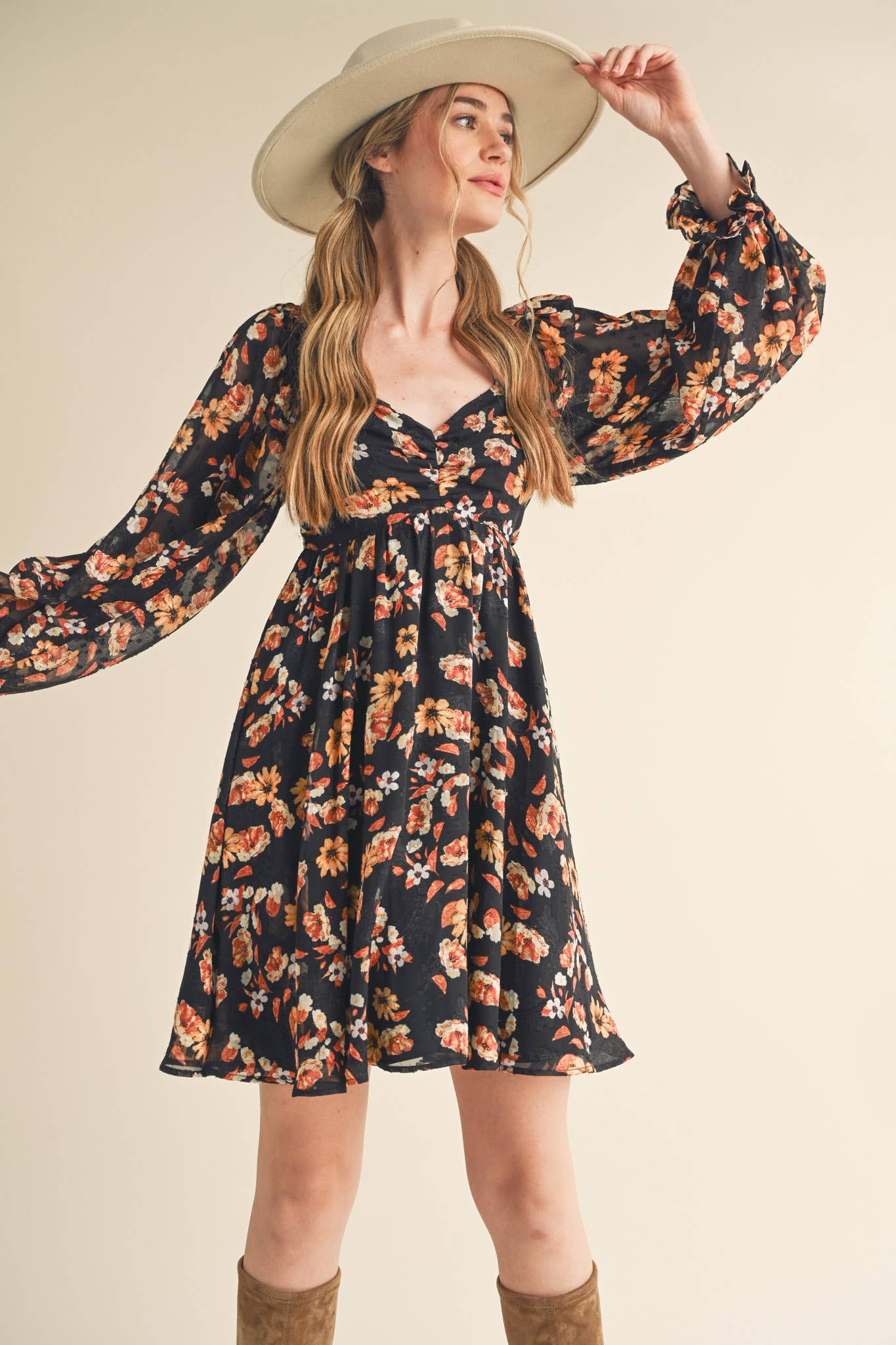 The perfect dress for any occasion is this floral mini dress! Gorgeous floral fabric shapes this darling dress that has long puff sleeves, a sweetheart neckline, and a ruched bust detail. An empire waist tops the swing mini skirt. Pair with sneakers for a cute and casual date night look, or pair with strappy heels for an elegant style!