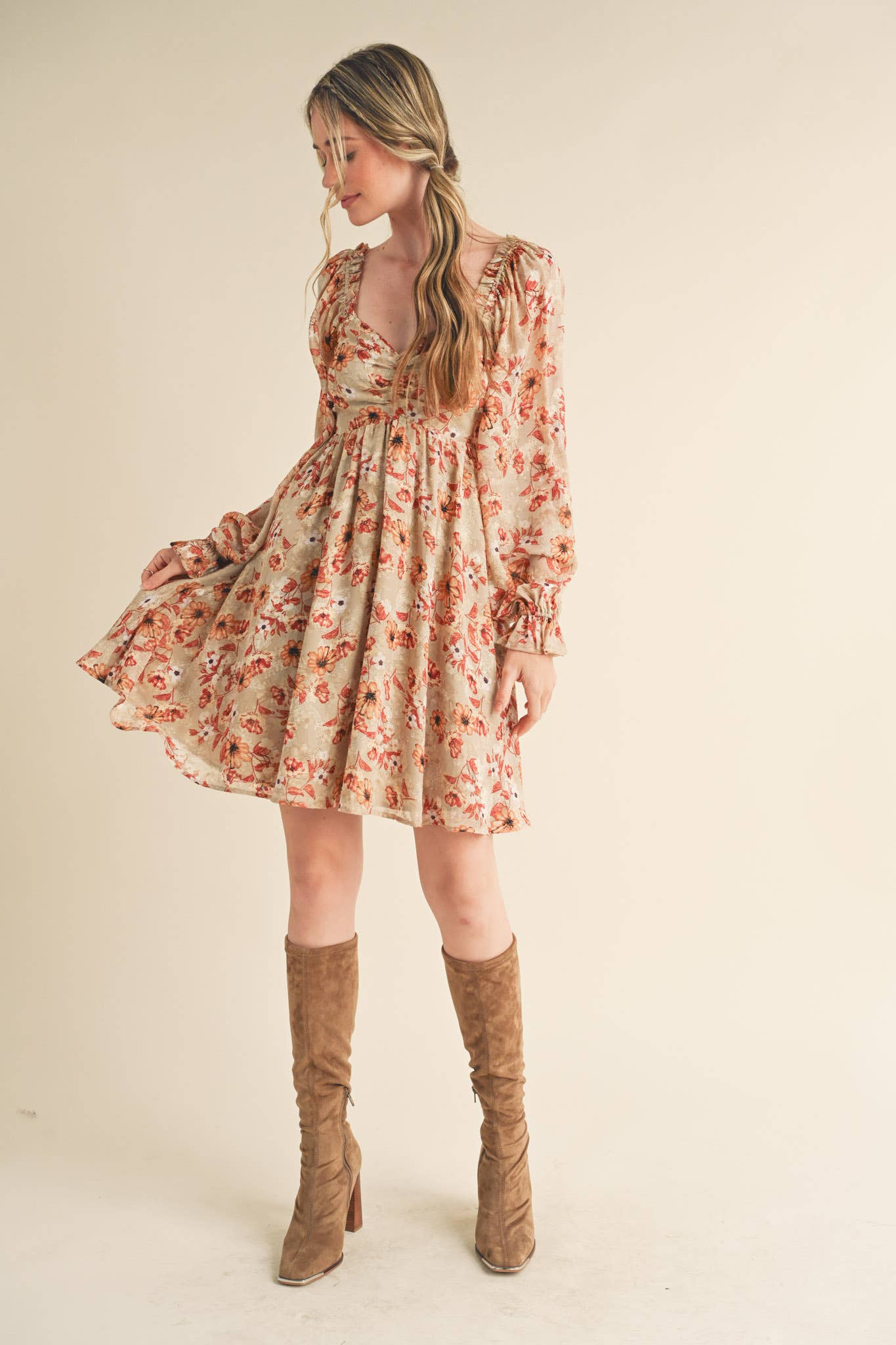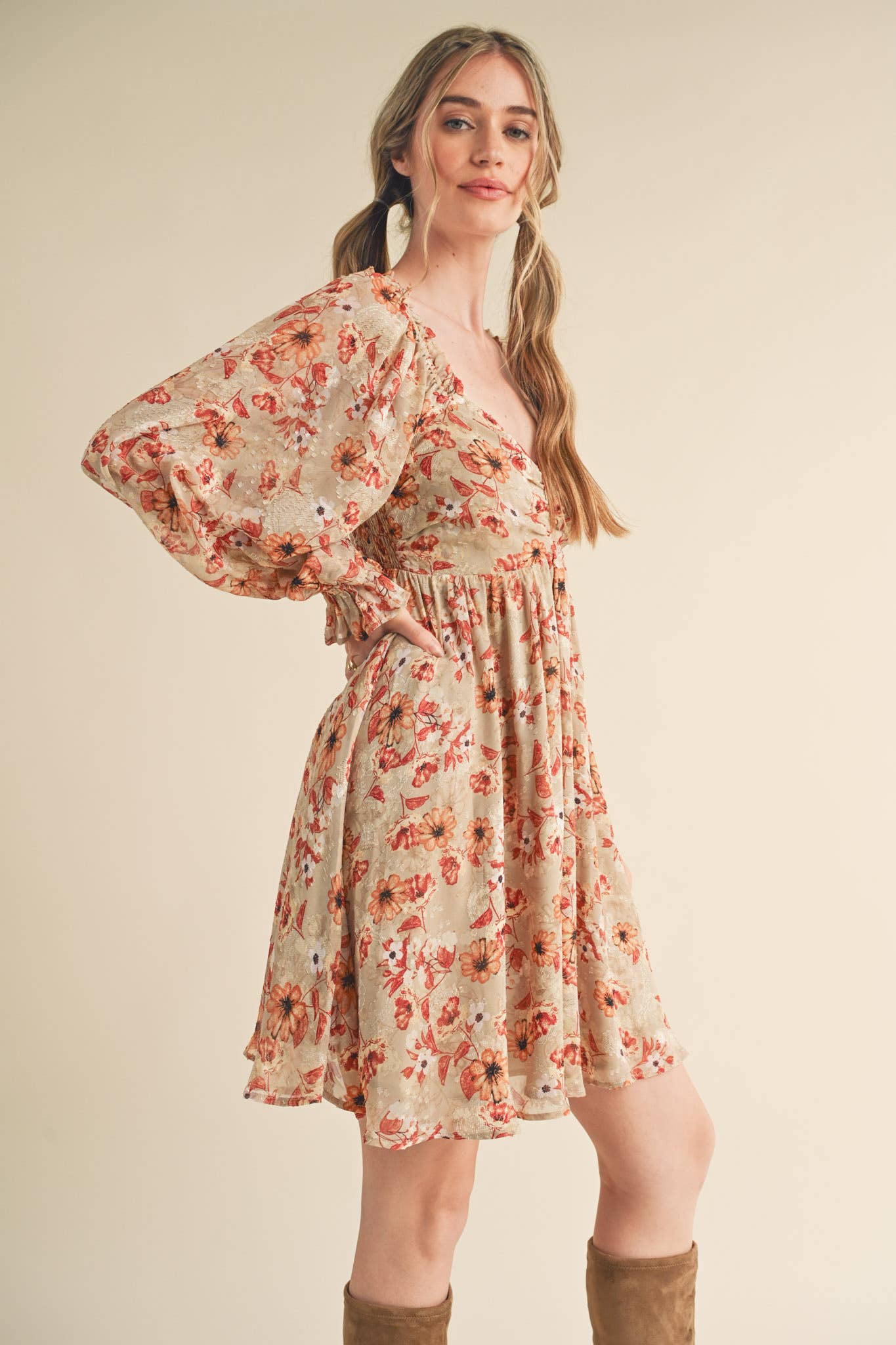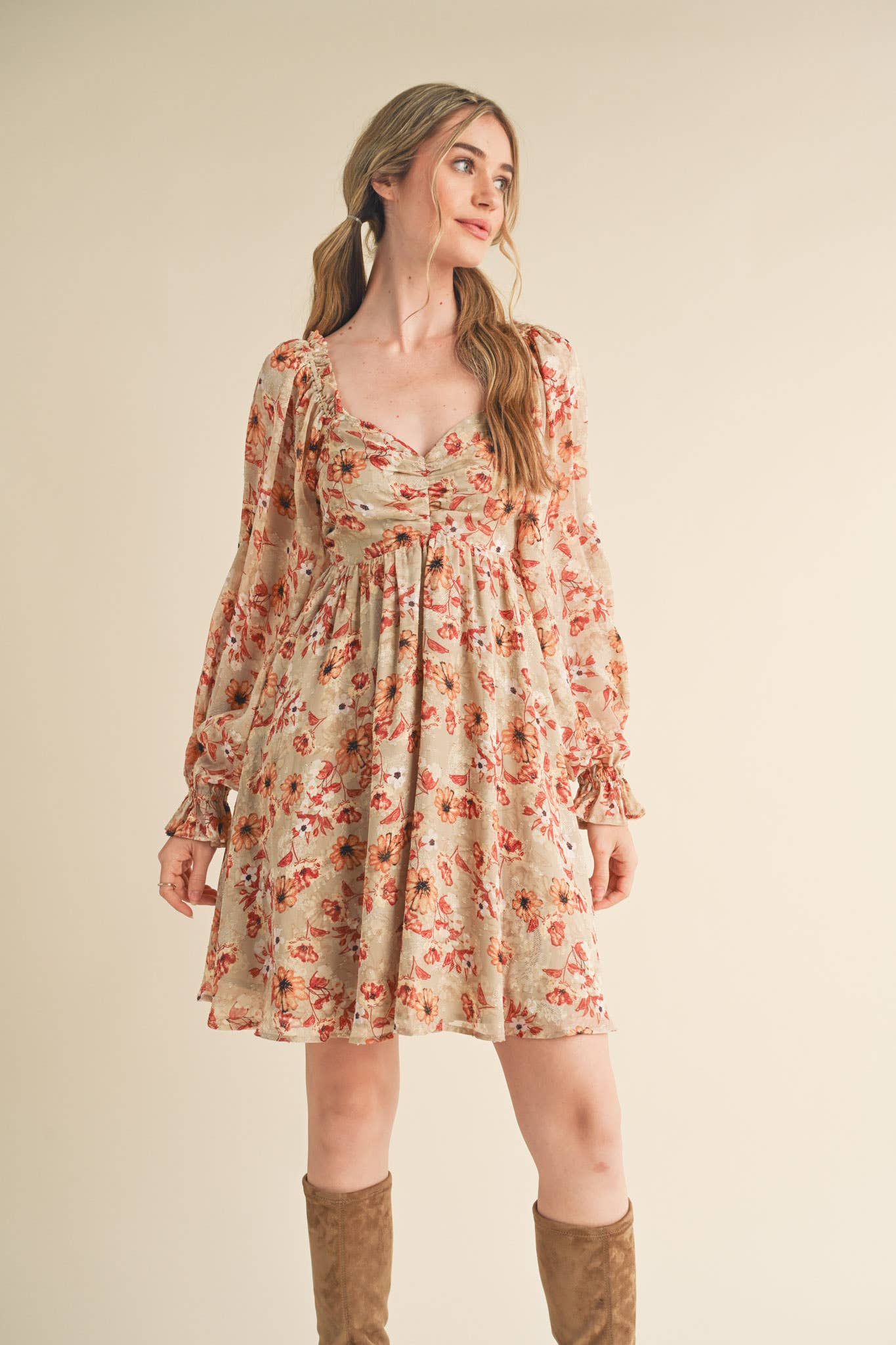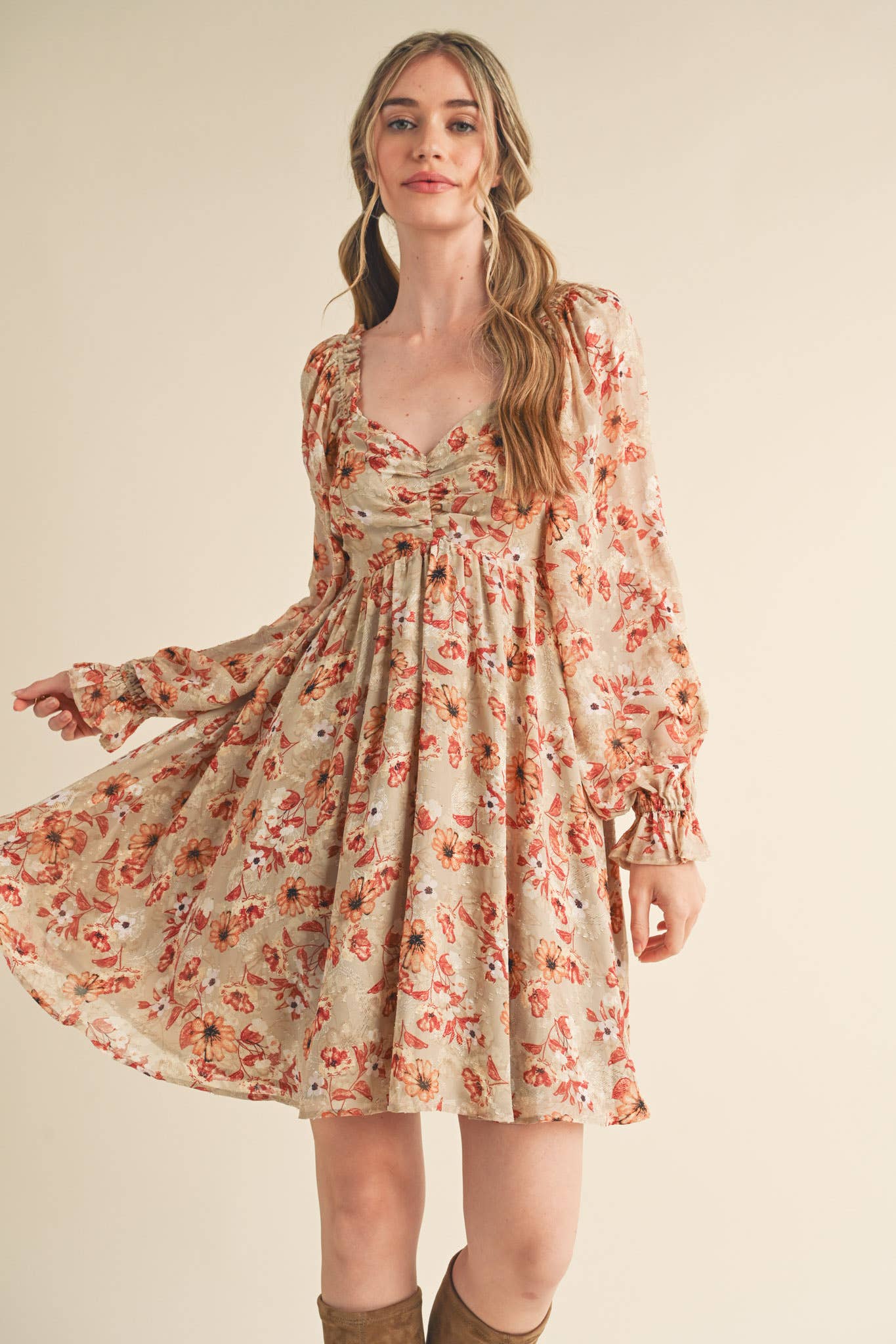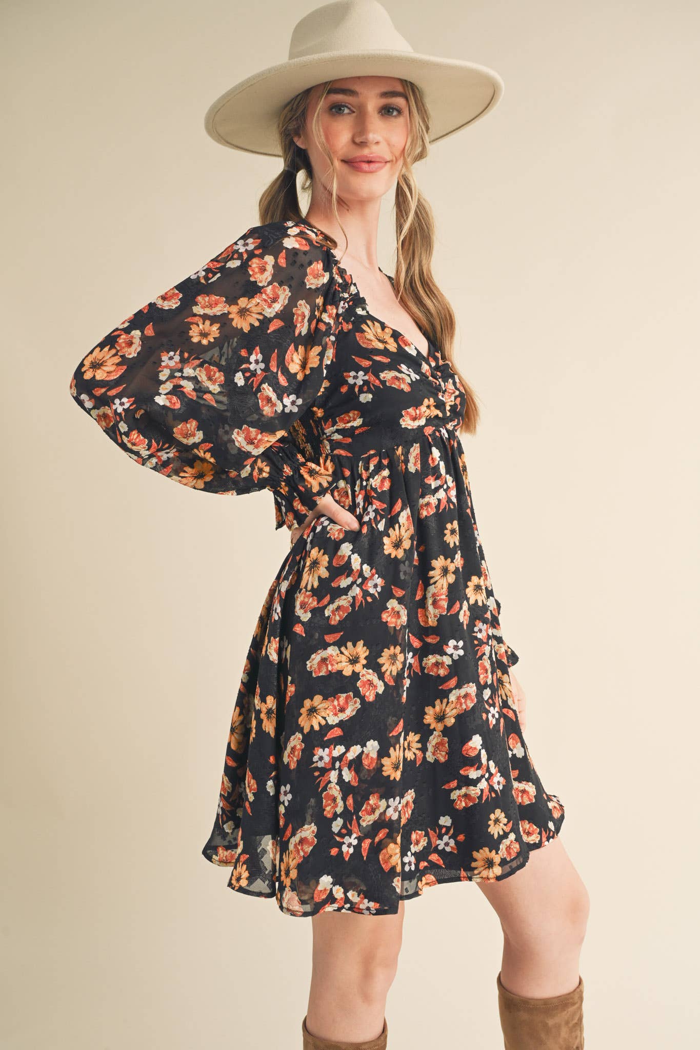 The perfect dress for any occasion is this floral mini dress! Gorgeous floral fabric shapes this darling dress that has long puff sleeves, a sweetheart neckline, and a ruched bust detail. An empire waist tops the swing mini skirt. Pair with sneakers for a cute and casual date night look, or pair with strappy heels for an elegant style!
