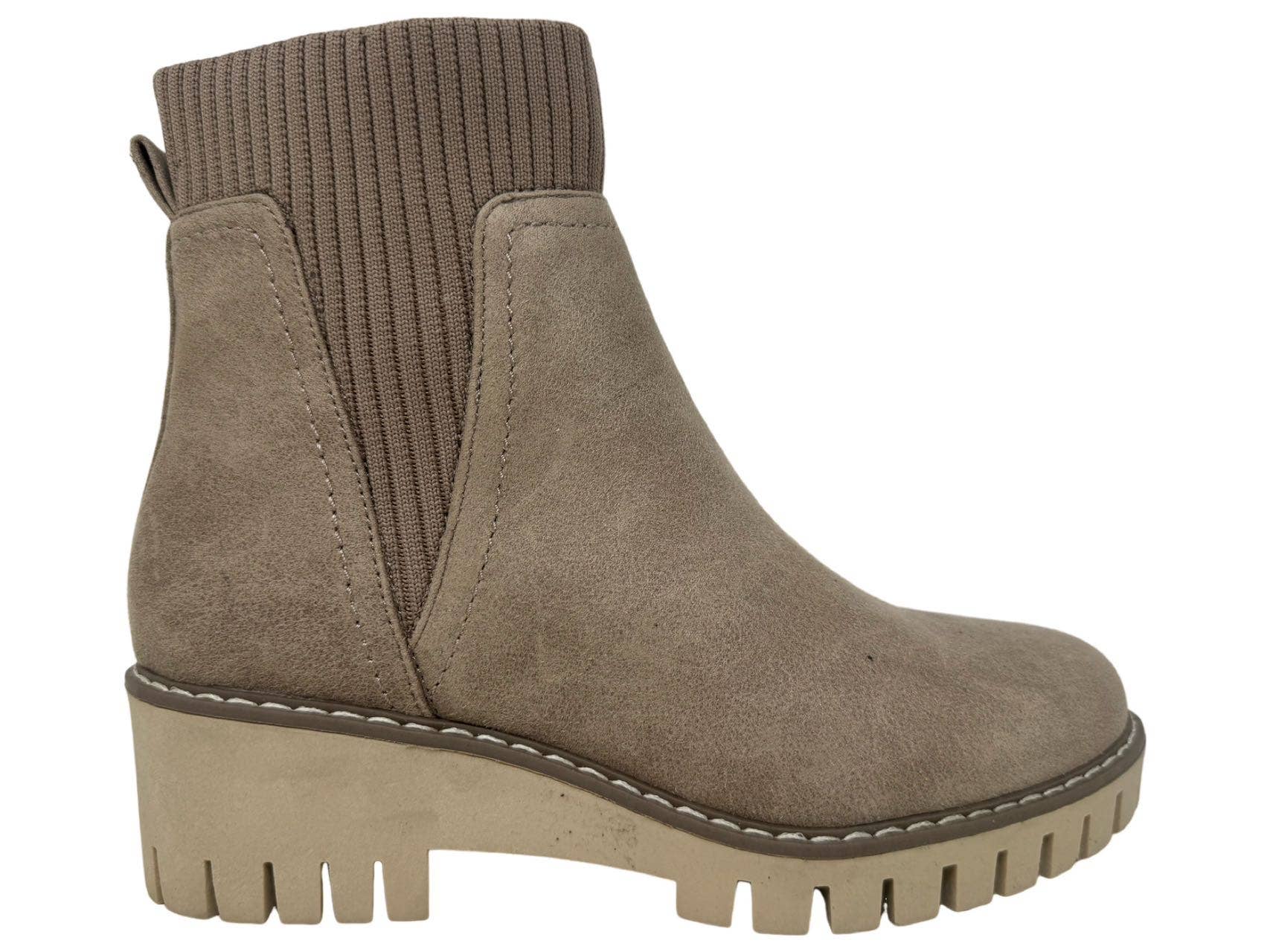 Magnolia Very G Sweater Cuffed Slip on Boot with vegan man made materials, cushioned footbed.